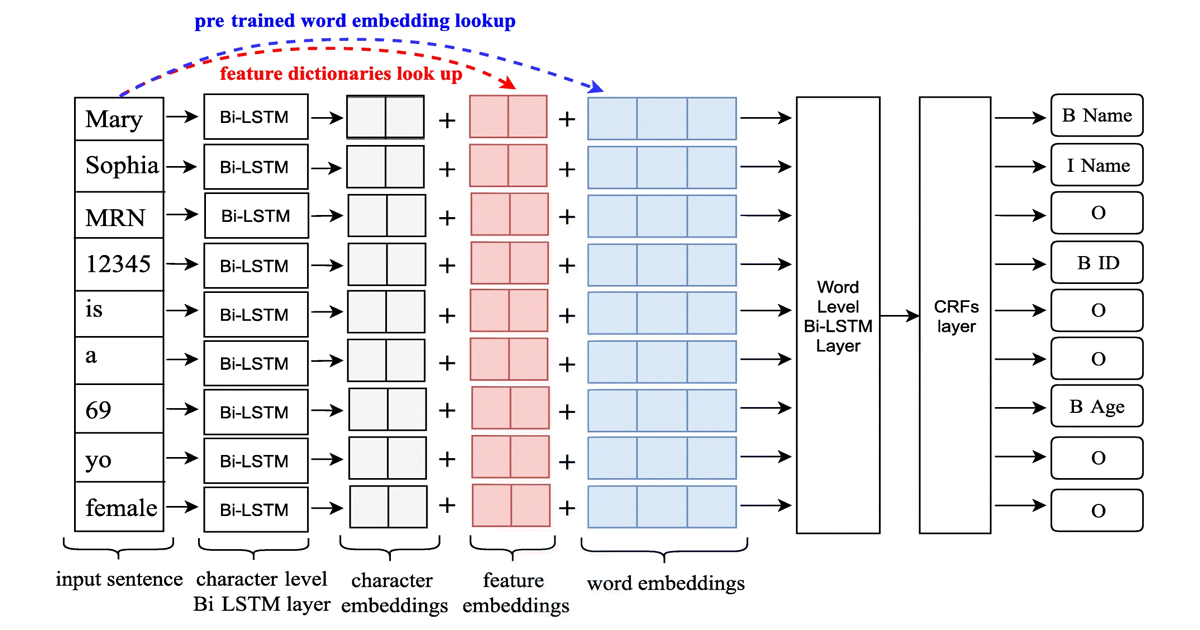- CRF Output Layer: Enhancing sequence prediction to ensure valid PHI tagging.